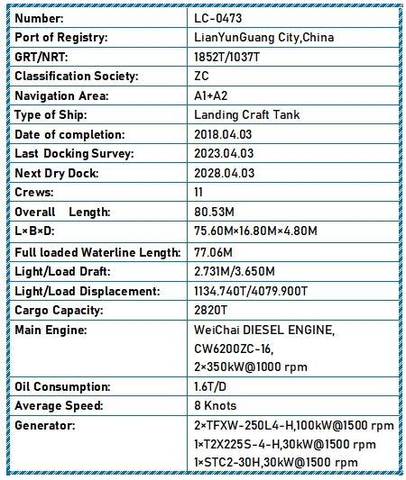 Main Engine: WeiChai DIESEL ENGINE,
