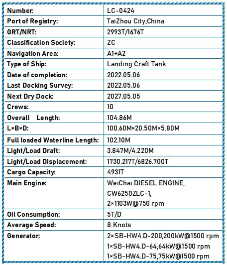 2022 Built 5000 DWT Landing Craft Tank For Sale