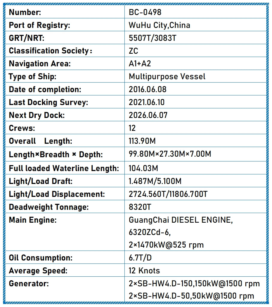 Deadweight Tonnage:    8320T
