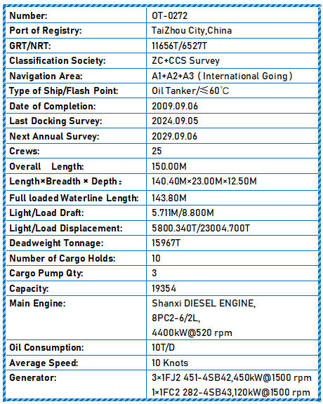 Type of Ship/Flash Point: Oil Tanker/≤60℃