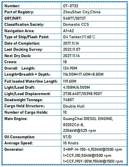 Type of Ship/Flash Point: Oil Tanker/≤60℃
