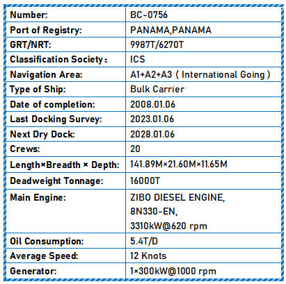 Deadweight Tonnage: 16000T
